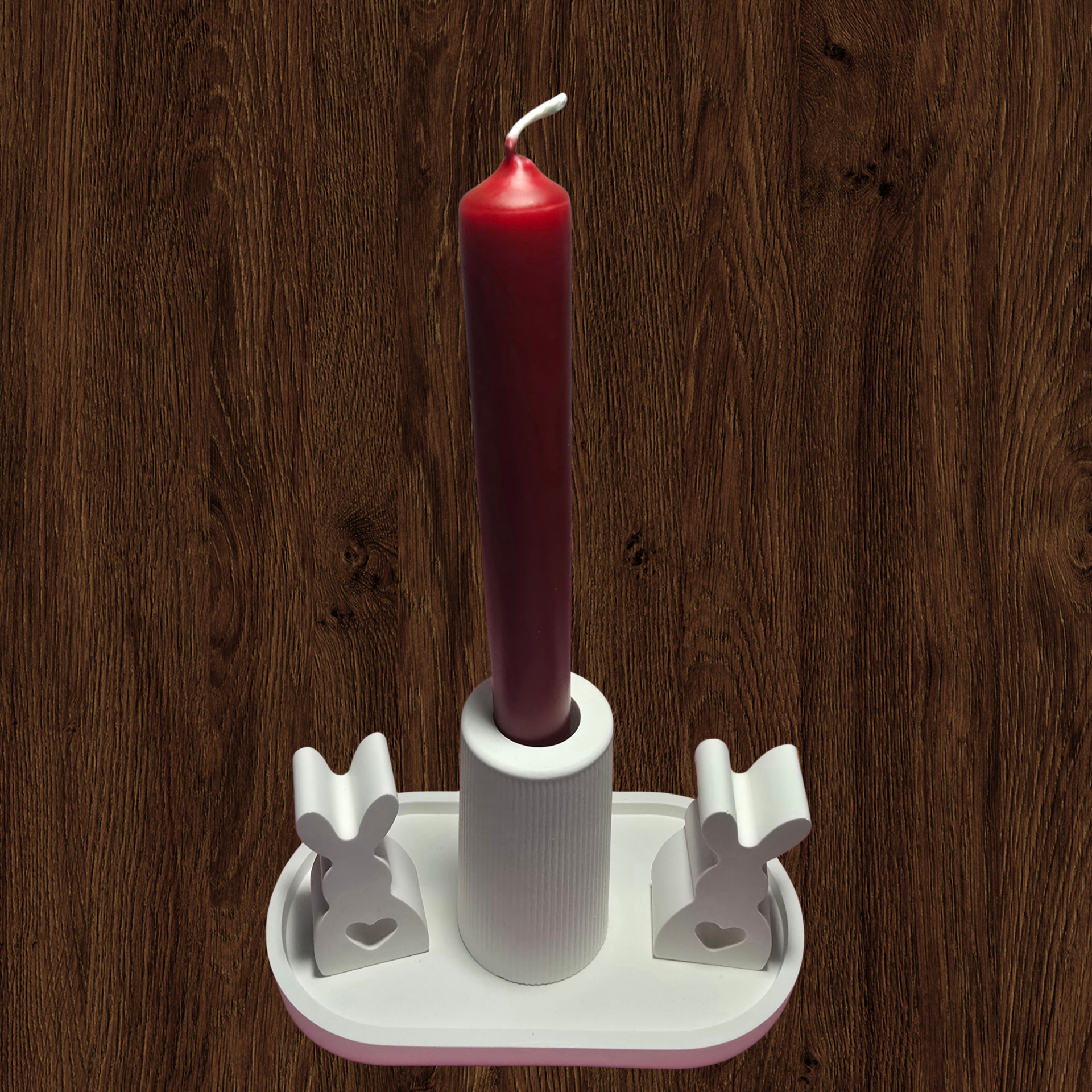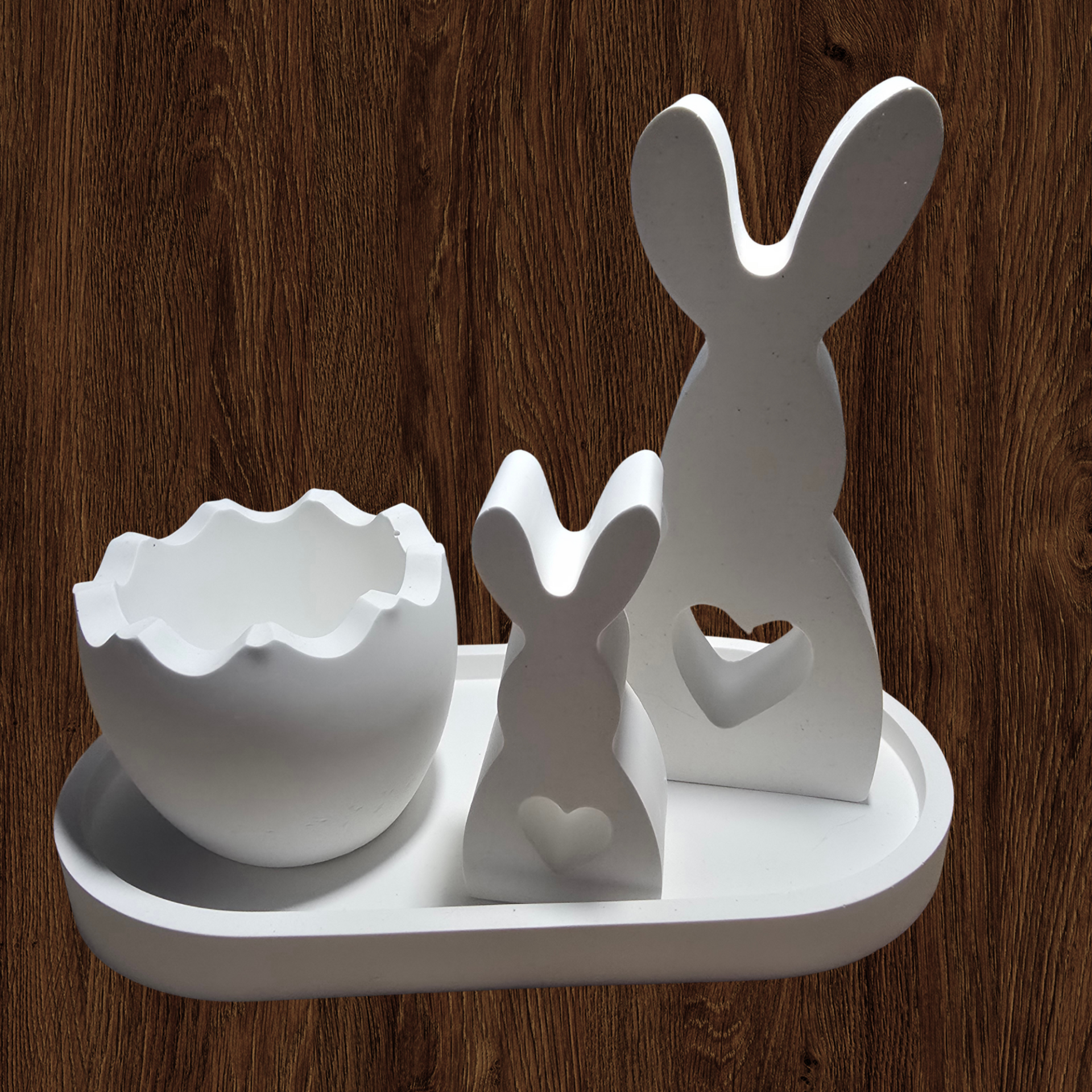 Handgemachtes Oster-Deko-Set aus Gips – Kerzenhalter mit Hasen & Tablett