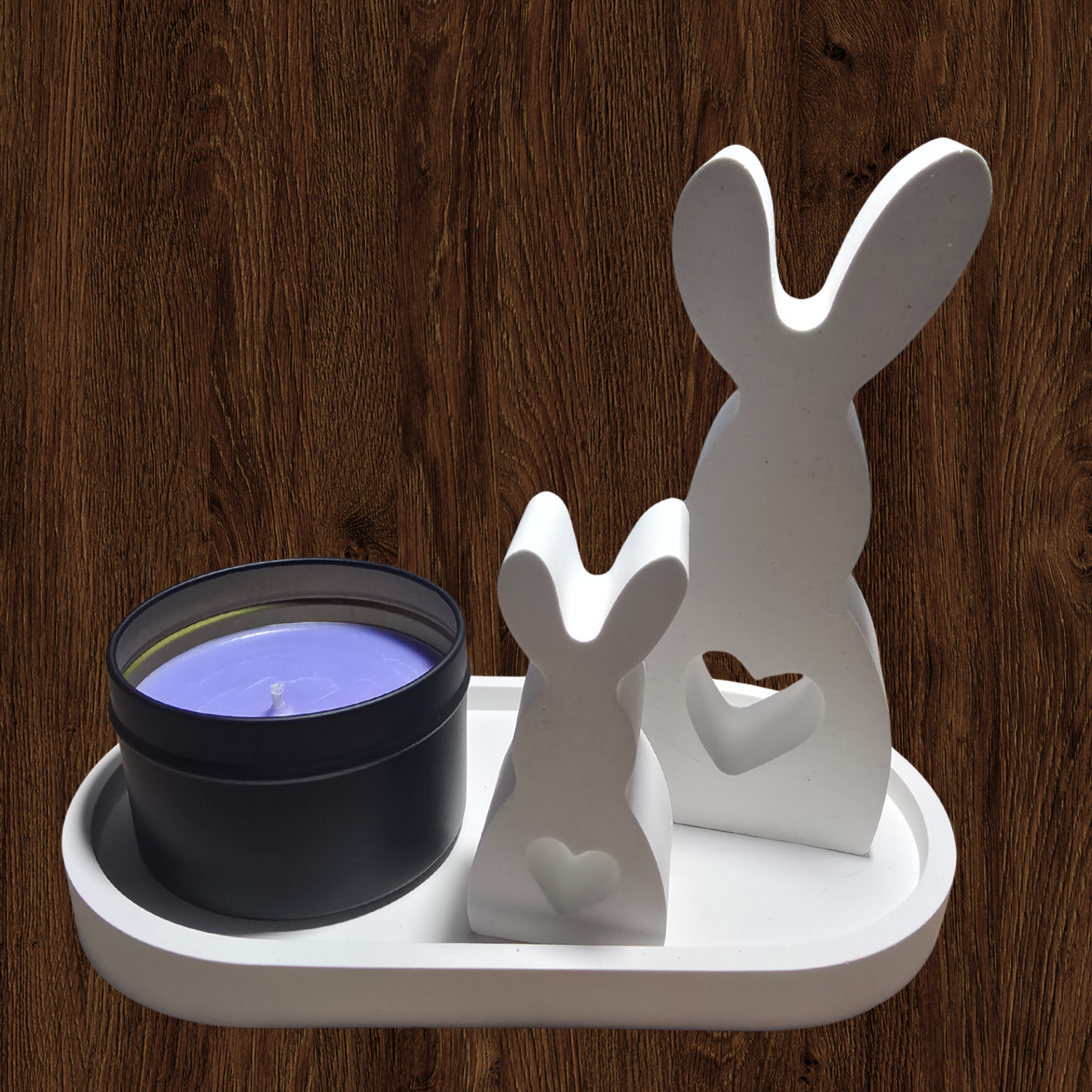 Dieses handgefertigte Hasen-Deko-Set aus Gips bringt eine ruhige, moderne Atmosphäre in dein Zuhause.